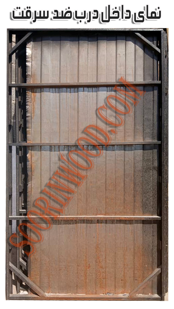این مدل درب ها، درون دربهای ضد سرقت عموما از جنس فولادی میباشد، یک ورق فولادی و 4 عدد لچکی چهار گوشه و 5 عدد قوطی افقی داخل آن هم پر شده از ینولیت و فوم و پشم سنگ پر شده است، البته باید بگوییم که دور تا دور قفل ها هم فولاد دوبل خورده میشود برای تقویت بیشتر جای قفل درب ضد سرقت و همچنین روکش های درب ضد سرقت در تنوع و مدل های مختلف باعث افزاریش و یا کاهش درب ضد سرقت دارد.