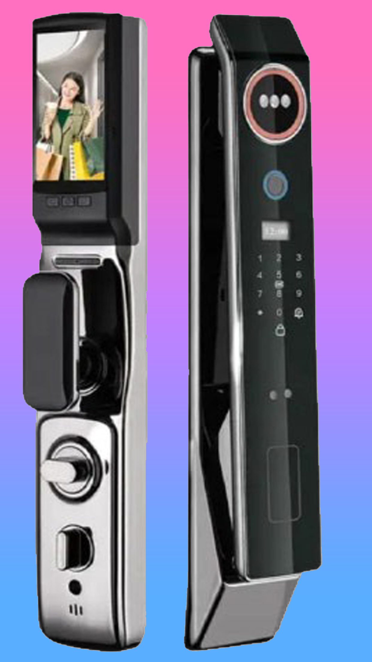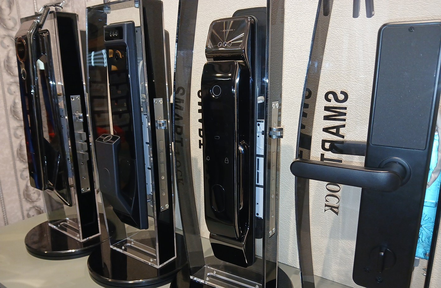 انواع مدلهای قفل هوشمند و دستگیره دیجیتال از جمله قفلهای اثر انگشتی، قفل کارتی هتلی، دستگیره چشمی دار به همراه قفل تشخیص چهره، قفل الکترونیکی و چشمی دیجیتال قابل نصب بر روی انواع دربهای ضدسرقت و معمولی از جمله درب ورودی منزل، آپارتمان، حیاط، محل کار و …